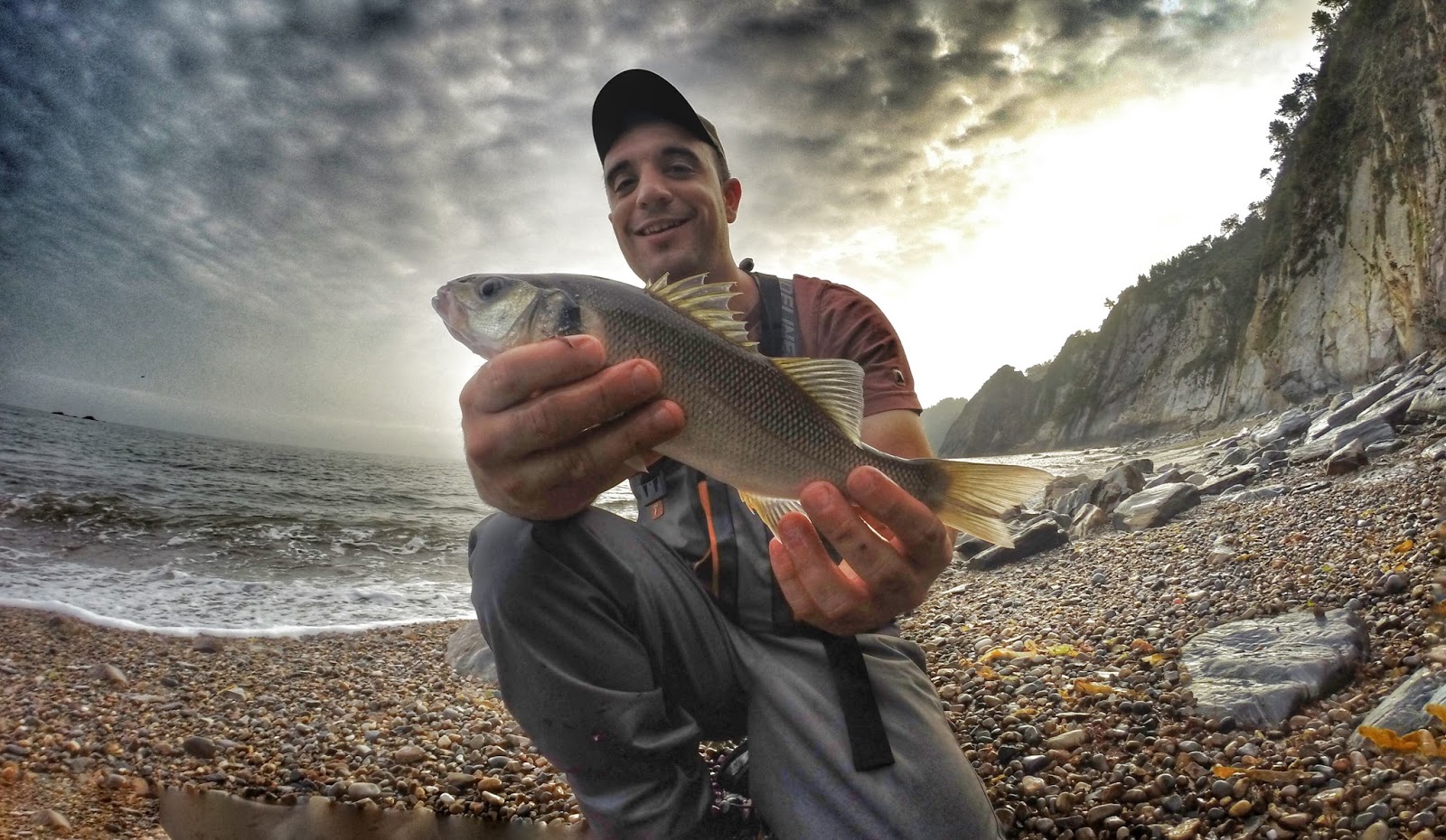 Viendo el mar q había nos dedicamos a pescar la superficie a diestro y siniestro sacando unas cuantas lubinas pequeñas q nos hicieron la mañana entretenida. |